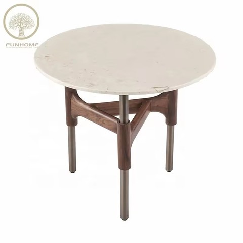 Tavolino rotondo in pietra di lusso moderno con lato in metallo per la casa da pranzo e soggiorno mobili